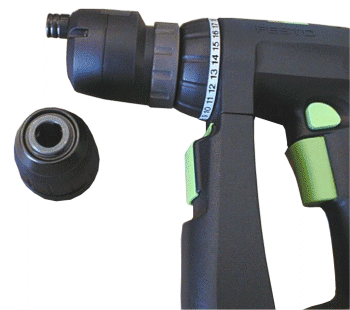 | Description The Festool CDD12fx drill has a somewhat unique configuration among cordless drills. The overall form is known as D shape, most drills (and another Festool one as well) are of the T shape. In this D shape drill, the motor is actually in the grip and the L shaped battery pack is on the front instead of attached at the bottom. The Drill comes in a Systainer, included is a fast charger, two batteries, a bit holder that clips onto the drill, and (at the time of this writing), one of the accessory chucks. The drill is very powerful, I've never had a need for any of the 24v monster drills in my shop, in fact all my previous cordless drills were only 9.6v (Festool offers this drill as 9.6v also). I've not encountered any reasonable task in my shop this drill would not handle; for woodworking I don't think you need much more battery than this; besides, smaller drills weigh less and are easier to maneuver. |